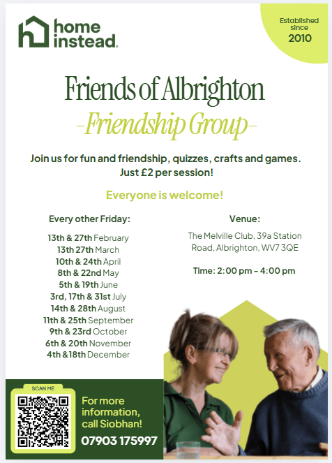 Our events are very popular for those aged 55 and over in Albrighton and the surrounding hamlets. We enjoy bringing together the community for a range of classes, events and days out. Our wonderful team of volunteers help to host, transport and support those in our wonderful village. We work hard to create a welcoming environment and a warm welcome to our purpose-built club.